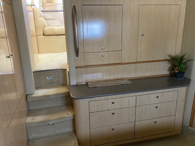 Finish work in the Squadron 58 is first-rate. Joinery and wood panels are multi-lacquered in Walnut Satin.